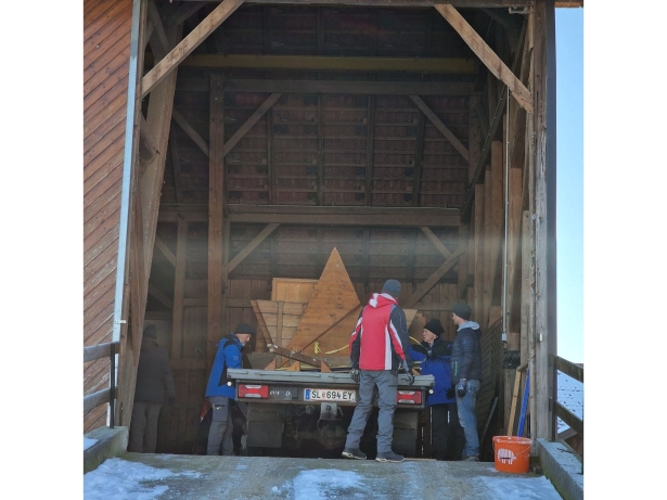 Durch die tatkräftiger Mithilfe von Benedikt, Simon und Stefan konnte die Hütte errichtet werden, nachdem Manfred im Stil eines Rallyefahrers den schweren Lkw über die eisige Auffahrt in die Lagerräumlichkeiten der Hütte beförderte. Hier gilt der herzliche Dank allen, die sowohl am Aufbau und Abbau der Hütte beteiligt waren, wie all jenen, die für den erfolgreichen Betrieb unseres Standes verantwortlich waren! Ich denke, es hat sich gelohnt!